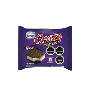 Crujiente y cremoso: El Helado Crazy Sangurucho de Savory incluye trozos crujientes de galleta mezclados con helado de chocolate, proporcionando una mezcla perfecta de texturas y sabores.